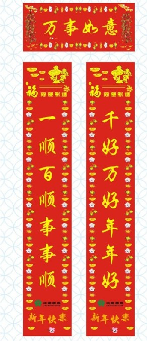 春聯(lián)、對聯(lián)又稱楹聯(lián)、對偶、門對、春貼、春聯(lián)、對子、桃符等,是一種對偶文學(xué),起源于桃符。對聯(lián)是利用漢字特征撰寫的一種民族文體。一般不需要押韻(律詩中的對聯(lián)才需要押韻)。對聯(lián)大致可分詩對聯(lián),以及散文對聯(lián)。對聯(lián)格式嚴(yán)格,分大小詞類相對。傳統(tǒng)對聯(lián)的形式相通、內(nèi)容相連、聲調(diào)協(xié)調(diào)、對仗嚴(yán)謹(jǐn)。眾印網(wǎng)印刷春聯(lián)對聯(lián)多年,建議客戶采用157g銅版紙印刷,規(guī)格100cm*17cm規(guī)格印刷,這種規(guī)格印刷比較便宜。客戶也可自定義產(chǎn)品規(guī)格,我們都可以生產(chǎn)。